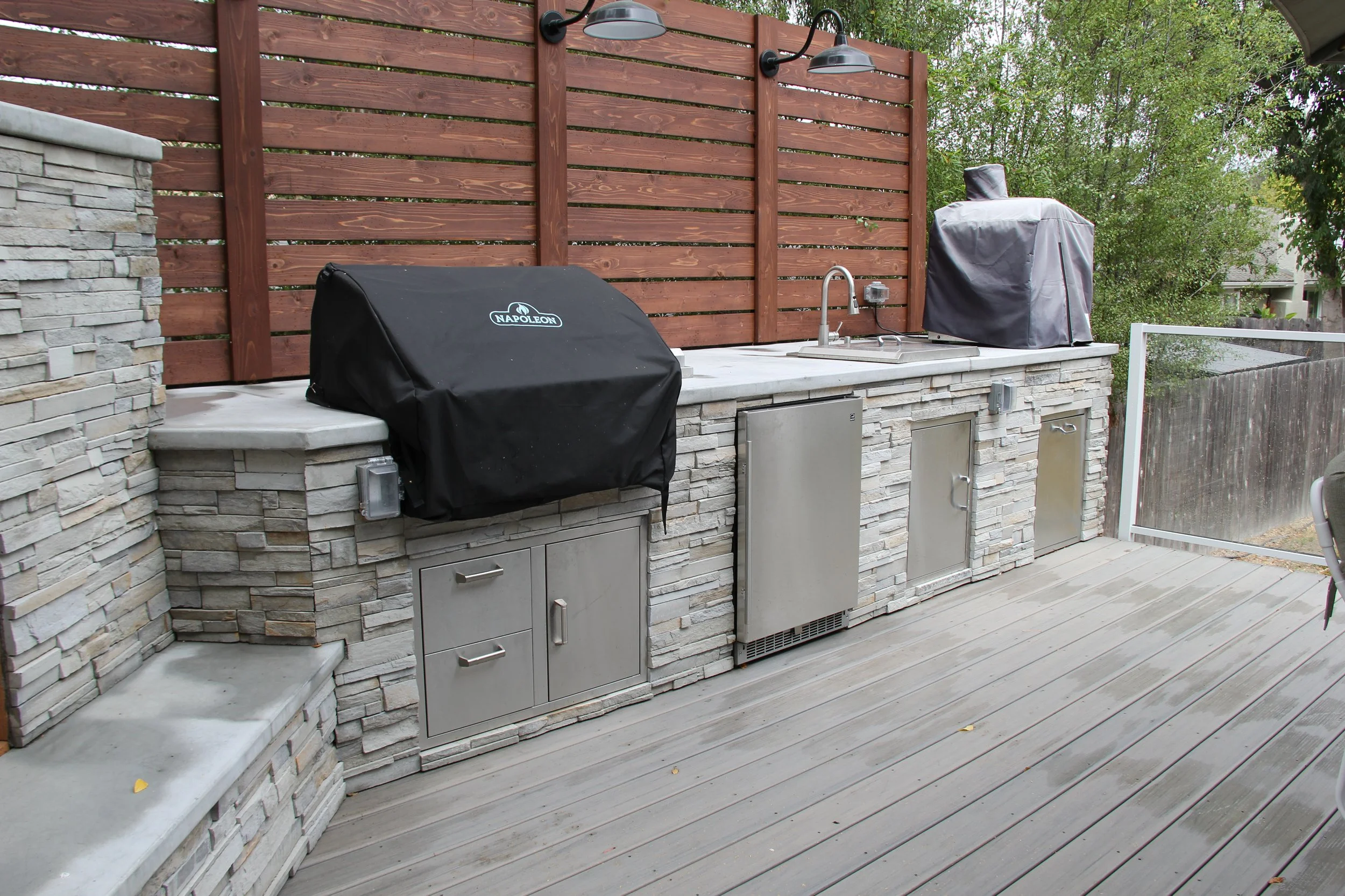 It Modern Two-Level Deck with Custom Fireplace & Grill Station