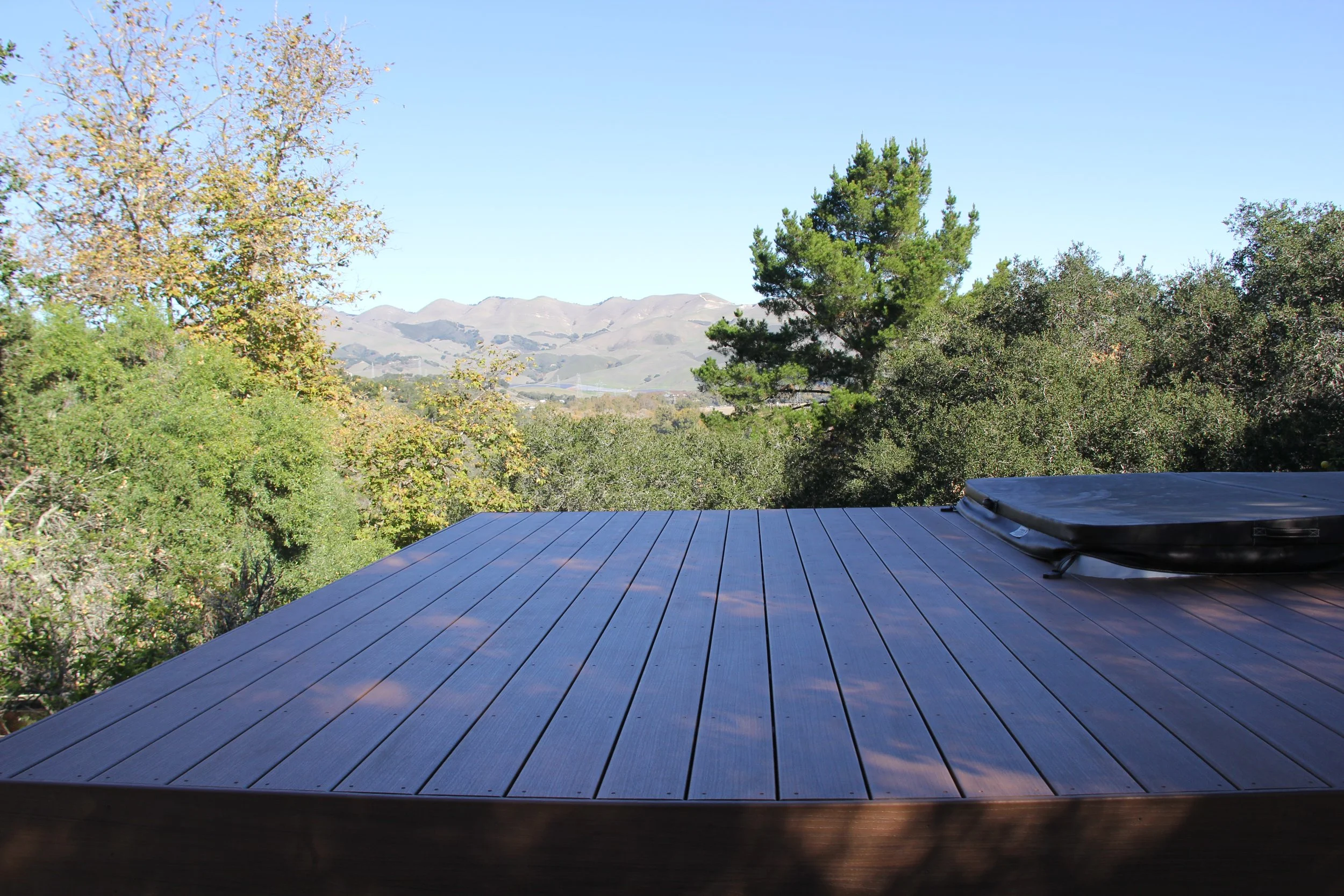 Check out this custom-built spa deck designed to blend seamlessly into the surrounding landscape. Elevated with clean, modern lines, this deck creates a smooth walk-up experience to the hot tub while maximizingghe stunning mountain and valley views. built with durable, low-maintenance composite boards, it offers long-lasting performance and a warm, natural look. The wide steps provide safe, comfortable access and add to the overall spacious feel — perfect for relaxing, entertaining, and enjoying the scenery.