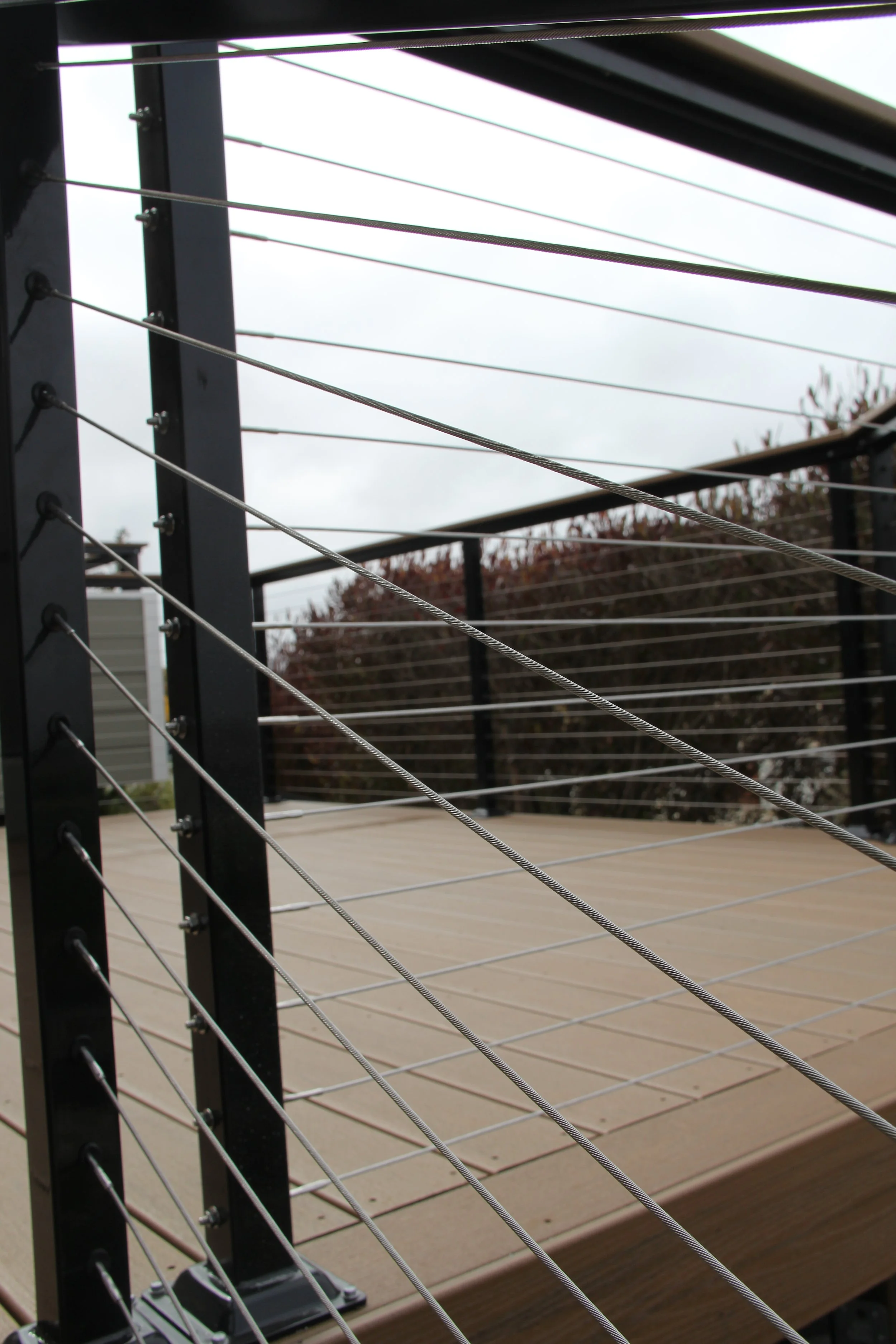 This project features two beautifully coordinated outdoor spaces using premium composite decking materials. The smaller deck is crafted with TimberTech decking in English walnut, offering a rich, natural tone that enhances the cozy seating area. The larger deck showcases Trex decking in Jasper, providing a warm, contemporary look complemented by sleek black cable railing for an open and modern feel. Together, these decks created a seamless transition between relaxation and entertaining areas— built for lasting beauty and low-maintenance performance.