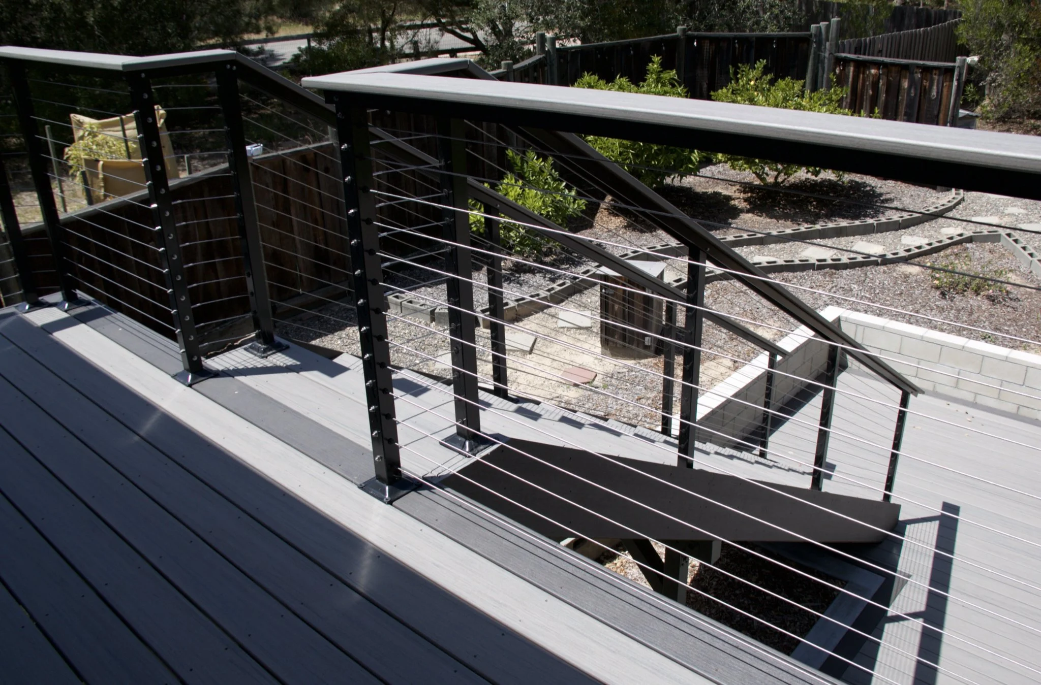 We completely transformed this backyard into a modern, low-maintenance outdoor living space. Featuring premium composite decking in Espresso and Ashwood, this build delivers a sleek, durable finish designed to last for years without the upkeep of traditional wood. The custom layout opens up the yard with a spacious entertainment area, while the elevated design and clean cable railing system add a contemporary edge without blocking the view. Finished with a bold staircase and matching railing system, every detail was built with both style and function in mind — creating a space that’s perfect for relaxing, hosting, and enjoying the outdoors year-round.